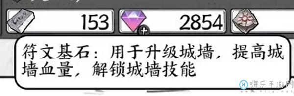 答:“符文基石”一般用于升级城墙,提高城墙血量,解锁城墙技能。(下图右边第一个)