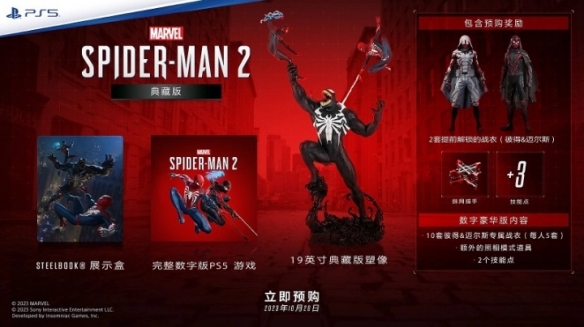 目前漫威蜘蛛侠2已经上架至PS4和PS5两种主机版本。